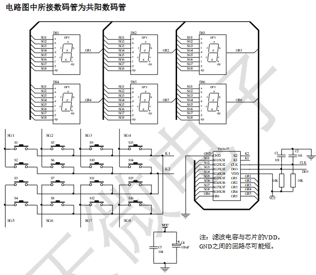 顯示模式(8 段×6 位),支持共陽數(shù)碼管輸出