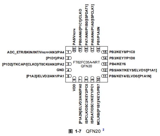 FT62FC6X系列微控制器根據(jù)不同的封裝類型和功能需求,提供了多種引腳配置。以下是結(jié)構(gòu)框圖及一些常見(jiàn)的引腳及其功能介紹: