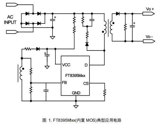 FT8395MBB和FT8395MDB的典型應用電路如圖1所示,電路結構簡潔,外圍元件少,便于設計和生產。