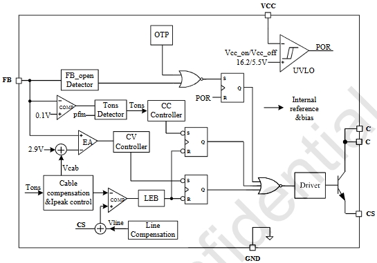恒流(CC)和恒壓(CV)控制:通過原邊控制實現,無需次級反饋電路。