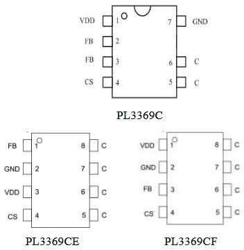 引腳功能PL3369C (SOP-7)PL3369CE (SOP-8)PL3369CF (SOP-8)