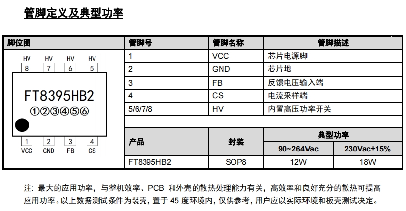 一句話總結(jié):HB2 把能調(diào)的模擬指標(biāo)都往“更精、更穩(wěn)、更低待機(jī)”方向擰了一圈。 在同為 SOP-8 封裝且外圍幾乎不變的前提下,F(xiàn)T8395HB-RT 的 12 V/1 A 與 FT8395HB2 的 5 V/2.4 A 其實(shí)只差變壓器匝比和 FB 分壓——官方把匝比從 12 V 方案約 11:1 調(diào)到 5 V 方案約 6:1,再把次級(jí)整流管換成 40 V 肖特基即可;芯片本體無(wú)需改動(dòng),真正實(shí)現(xiàn)“一顆料,兩檔功率”。