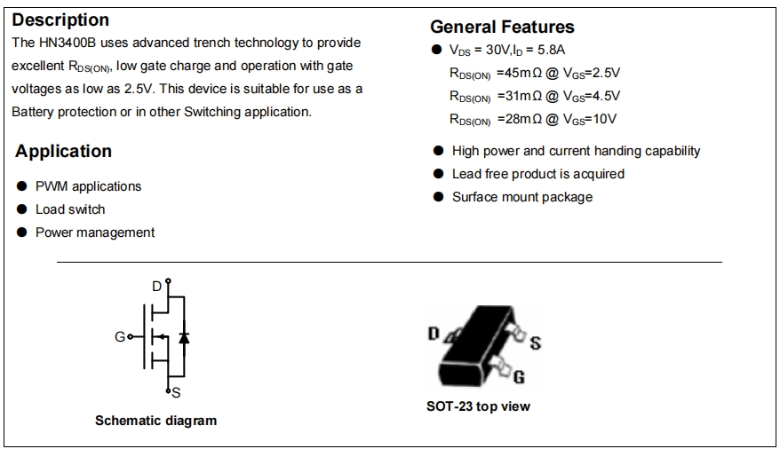 HN3400,HN3400B,HN3400C 30VN溝道增強型電源管理MOS詳細解析