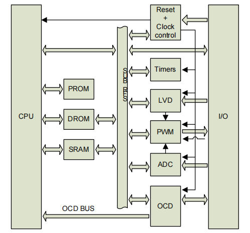 | 型號后綴 | Flash | RAM | Data EE | I/O 數 | ADC 通道 | PWM 路 | 封裝 (mm) | 典型應用 |