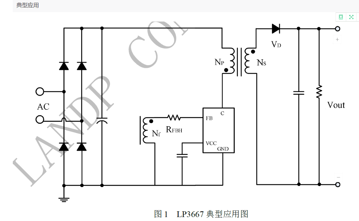 LP3667AH是一款高度集成的隔離型適配器和充電器的自供電 PSR 控制芯片,外圍設計極其簡單。LP3667AH固定原邊峰值電流, 通過變壓器原副邊匝比來設置輸出恒流點;通過設定一個 FB 電阻來設置輸出恒壓點。為了實現系統成本的極致簡化, LP3667AH 內置啟動電路,外圍不需要啟動電阻,內置 FB 下偏電阻,固定峰值電流來實現取消限流電阻;采用自供電的方式來取消輔助繞組 VCC 供電二極管。