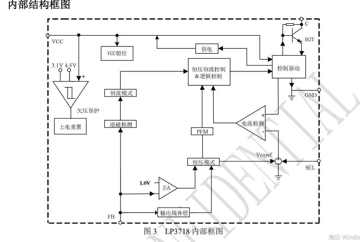 LP3718CD  是一款高度集成的隔離型適配器和充電器的自供電PSR控制芯片,外圍設計極其簡單。 LP3718 通過外置電阻,可調原邊峰值電流,再 通過變壓器原副邊匝比來設置輸出恒流點;通過設 定 FB 上偏電阻和下偏電阻來設置輸出恒壓點。 為了實現系統成本的致簡化,LP3718 內置啟 動電路,外圍不需要啟動電阻;采用自供電的方式 來取消輔助繞組 VCC 供電二極管。 為了實現更好的輸出電壓調整率,LP3718 內置 輸出線纜補償功能,可以通過設定 FB 外置上偏電 阻的值來調節輸出線纜補償值。 LP3718 集成了多種的保護功能,包括 VCC 鉗 位/欠壓保護,FB 腳上電阻開路保護,輸出短路保 護,輸出過壓保護以及過溫保護等保護功能。 LP3718 采用 SOP8L、ASOP6 以及 DIP7 封裝
