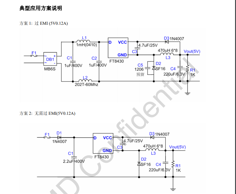FT8430采用超高壓工藝,內(nèi)部集成高壓?jiǎn)?dòng)電路,高壓功率開關(guān),以及電流采樣電阻,減少了外部元器件,極大地簡(jiǎn)化了系統(tǒng)應(yīng)用。內(nèi)置的頻率抖動(dòng)和軟驅(qū)動(dòng)設(shè)計(jì)能有效提高EMI性能。