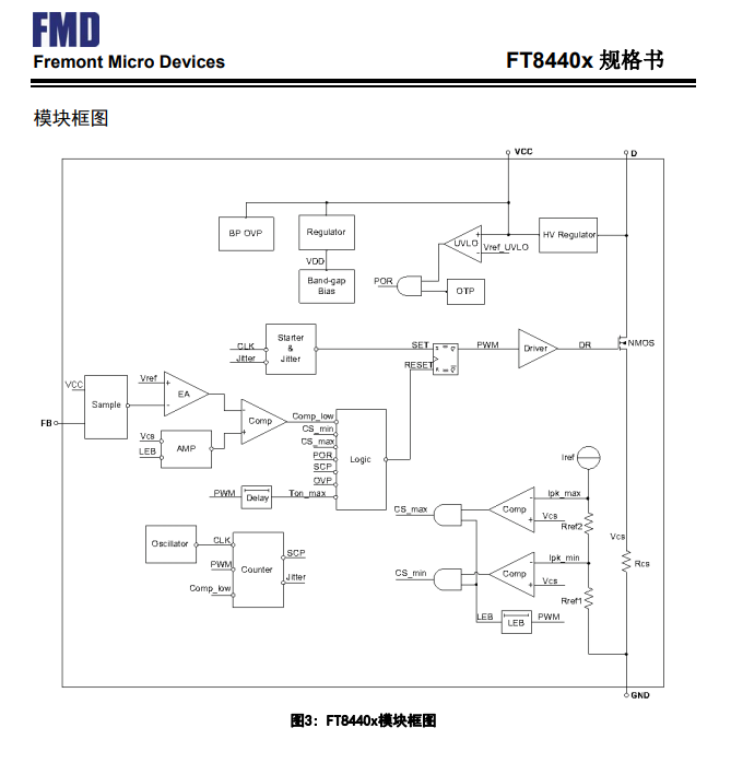 FT8440E采用超高壓工藝,內部集成高壓啟動電路,高壓功率開關,以及電流采樣電阻,減少了外部元器件,極大地簡化了系統應用。內置的頻率抖動和軟驅動設計能有效提高EMI性能。