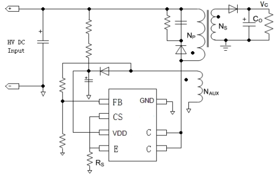 PL3378C同時(shí)具有多種保護(hù)功能:逐周期峰值電流檢測(cè)、VDD欠壓/過壓保護(hù)、輸出過壓保護(hù)、輸出短路保護(hù)和過溫保護(hù)等。