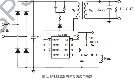BP86213D 芯片集成650VMOSFET、高壓?jiǎn)?dòng)和供電電 保護(hù)功能 路。采用PWM/PFM多模式控制技術(shù),從輔助繞組給VCO 輸入欠壓保護(hù)(Brown-in/out) 供電,能有效降低系統(tǒng)待機(jī)功耗,提高效率和動(dòng)態(tài)性能, 并減小系統(tǒng)工作在輕載時(shí)的噪聲。